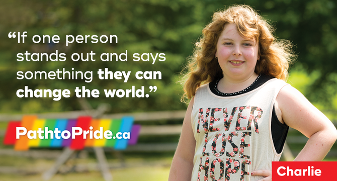 Charlie was also a patient at the CAMH Gender Identity Clinic clinic at age 6. Now ten, she has worked hard for two years to support Canada’s Senate to pass laws to protect gender identity and expression and she has tried to educate the public about gender diversity. At her recent speech at the Human Rights Monument – Charlie said: